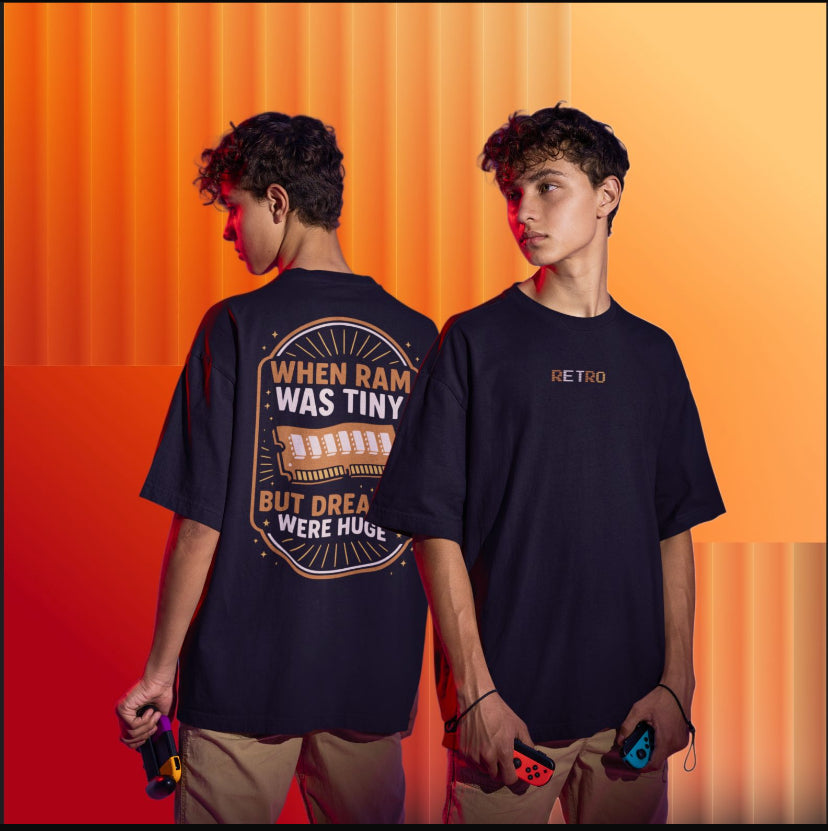 Remember when a whole childhood fit on 64 MB RAMs? This design celebrates the magic of the early tech era—when tiny RAM didn’t stop big dreams. Pure retro magic, printed on a comfy oversized tee.